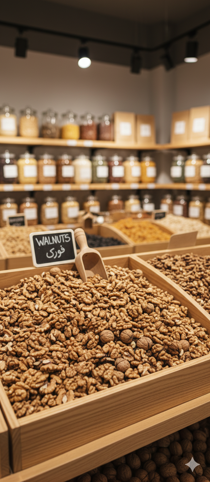 مغزگردو لوکس، مغز گردوی مرغوب و کاملاً خشک شده با بافت نرم و طعمی غنی و کرمی که در بستهبندیهای لوکس یا فلهای ارائه میشود و برای پخت، دسر، شیرینیپزی و ترکیبات سالم مناسب است.