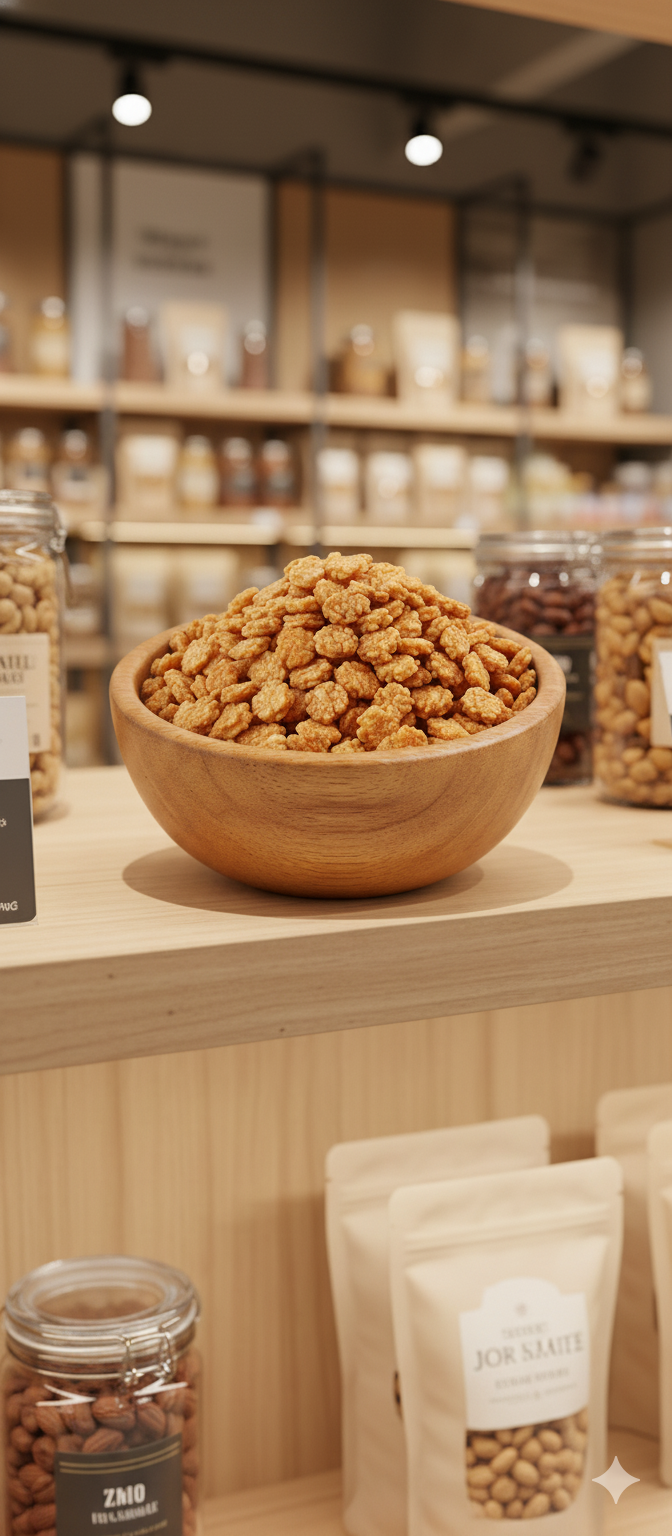 چیپس میگو با طعم فلفل قرمز، چیپس پفدار و ترد با محتوای میگو در ترکیب و طعمی تند-سراسر فلفل قرمز که مناسب بهعنوان میانوعده، snack حرفهای در فستفودها یا پذیرایی در رویدادها است.